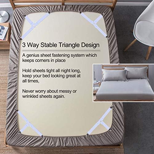 ❤A 3 way stable triangle design/wider elastic bands provides stable and stronger grip for heavy duty purpose. Built-in plastic clenching system protects fabric from harm and no damage caused to your bed sheet.