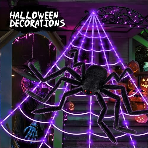 Brighter Spider Webs Halloween Decorations Lights,250 Purple LED Light Up